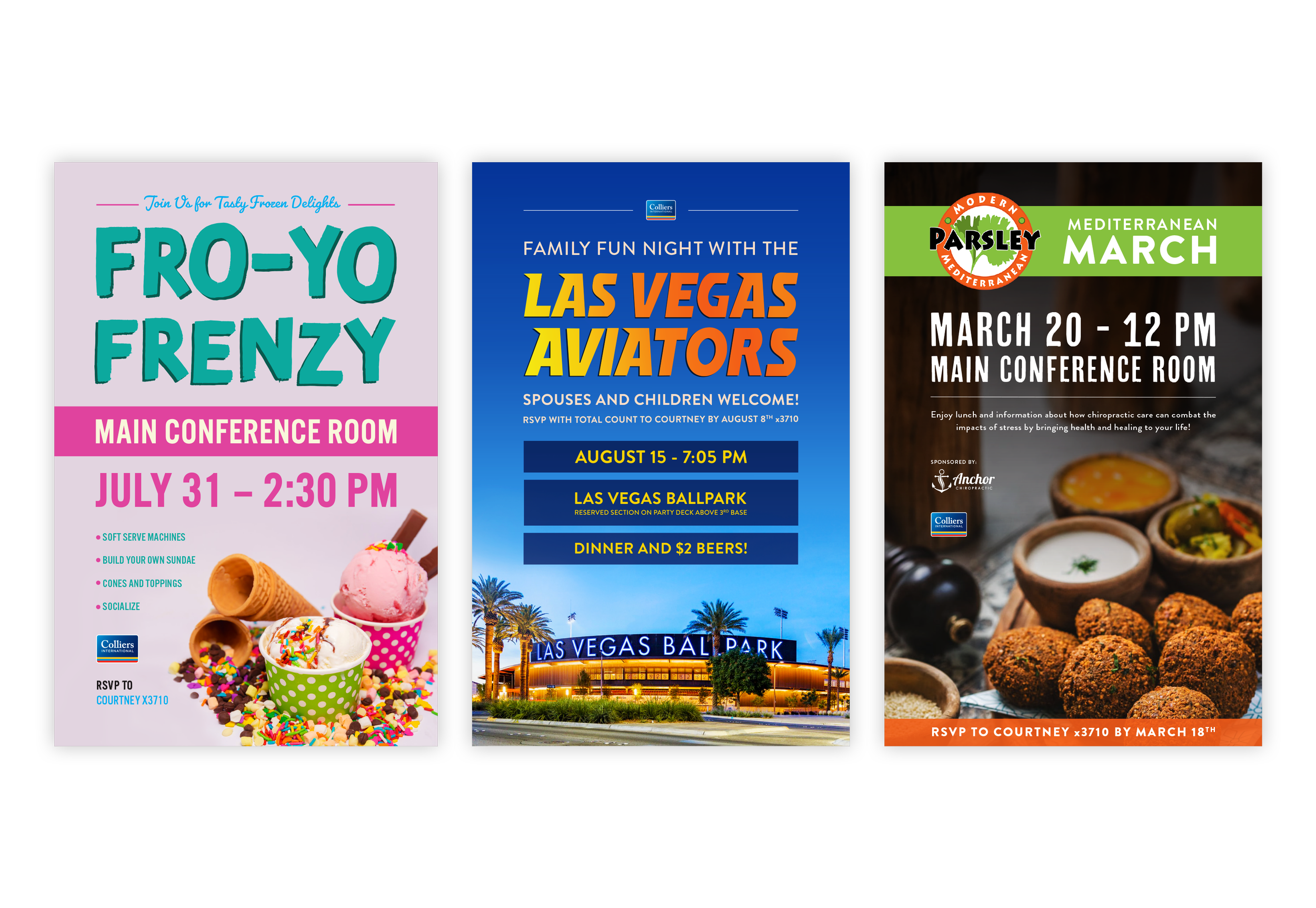 At Colliers, I worked with the creative manager and brokers to produce brochures and eblasts for commercial real estate sales while adhering to brand standards. Additionally, I designed internal materials for in-house projects.